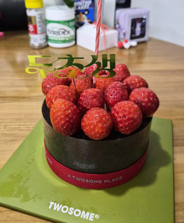케익 사이즈가 크지 않은편이라 위에 올라간 딸기들도 크기가 작은 편이었습니다. 그래도 딸기를 가득 올라있어서 집에 오는데 딸기들이 데굴데굴 굴러 떨어지더라구요. ㅎㅎ